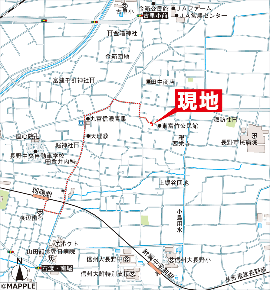 | 交通 | 電車:長野電鉄長野線朝陽駅 距離1000m 徒歩13分 電車:長野電鉄長野線附属中学前駅 距離1200m 徒歩15分 |
