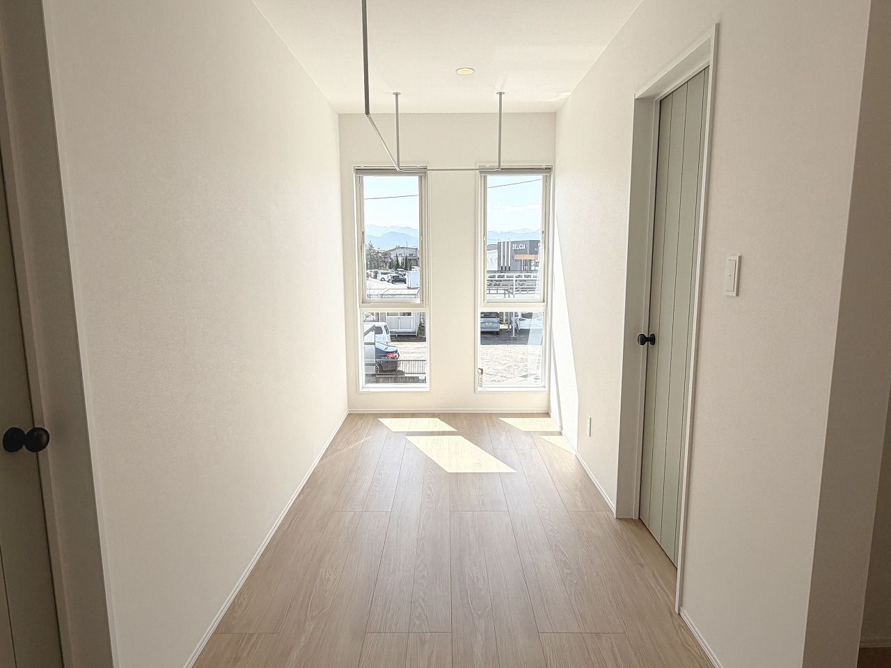 ■2階ホールには室内物干し(ホスクリーン)あり!雨の日や花粉の日のお洗濯の室内干しに!