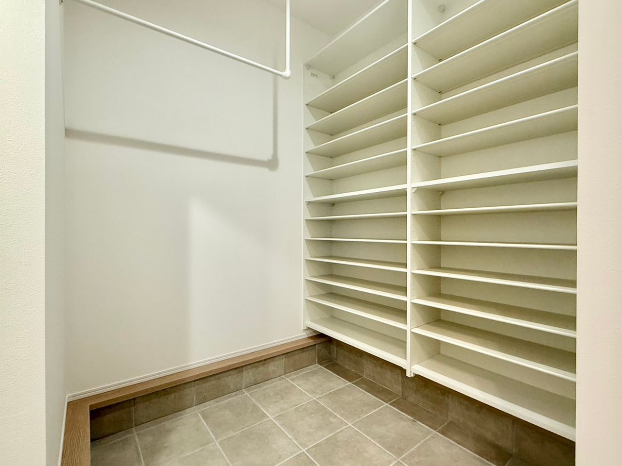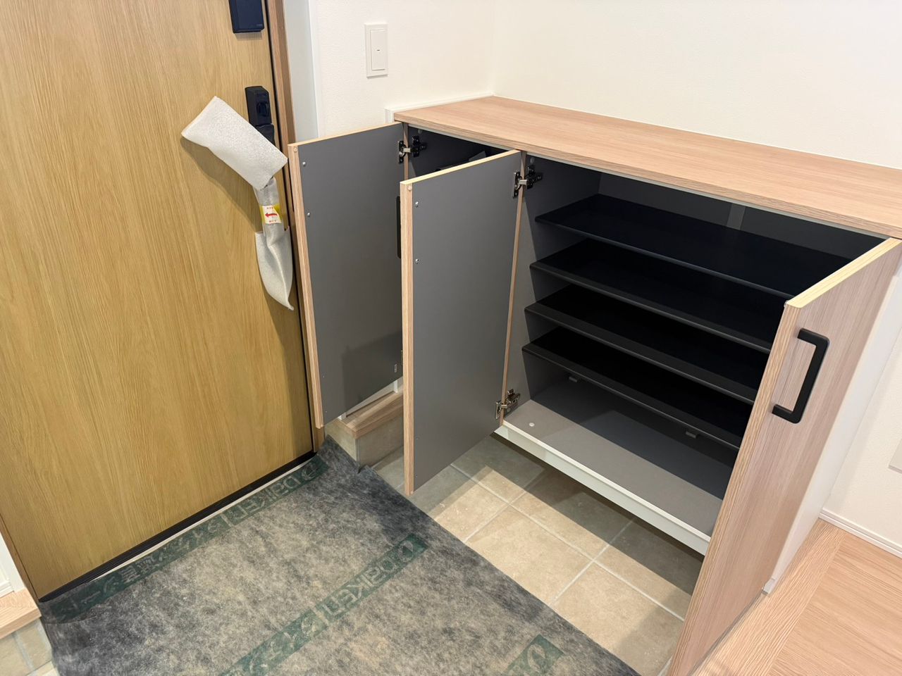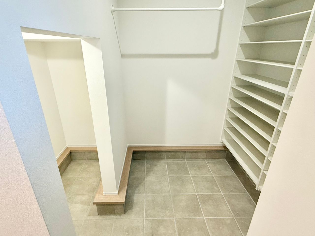◇シューズクローゼットの奥には階段下土間収納も!外で使用する物やベビーカーの収納もできます!