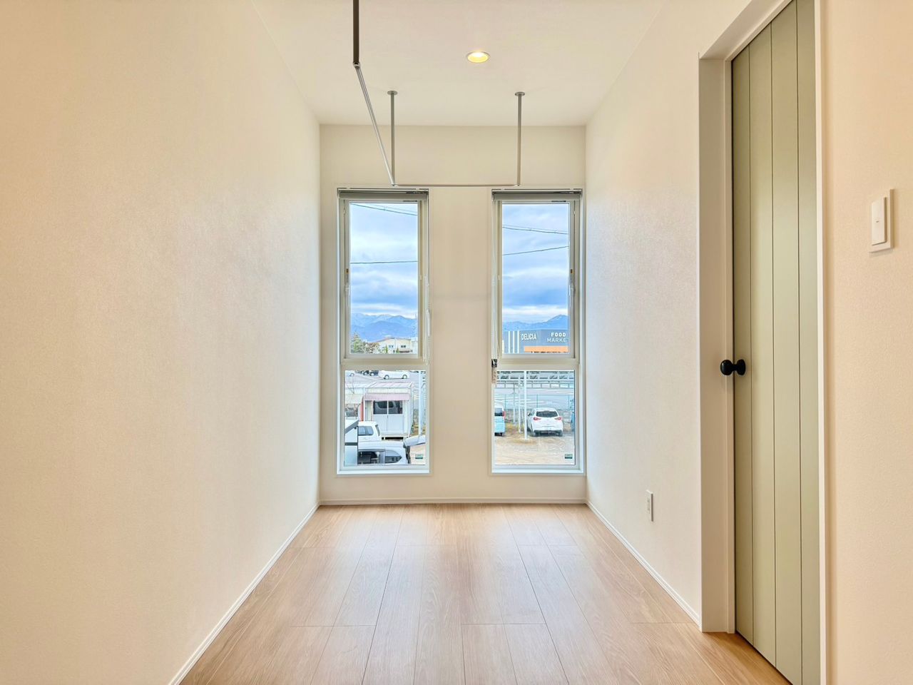 ■2階ホールには室内物干し(ホスクリーン)あり!雨の日や花粉の日のお洗濯の室内干しに!