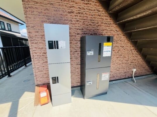 | 設備 | BS端子・システムキッチン・ガスコンロ有・TVモニタ付きインターホン・BT別室・温水洗浄便座・浴室乾燥機・バルコニー・エアコン・ウォークインクローゼット・外物置・給湯・室内洗濯機置場・洗髪洗面化粧台・プロパンガス・宅配ボックス・複層ガラス・二人入居可・駐輪場 |