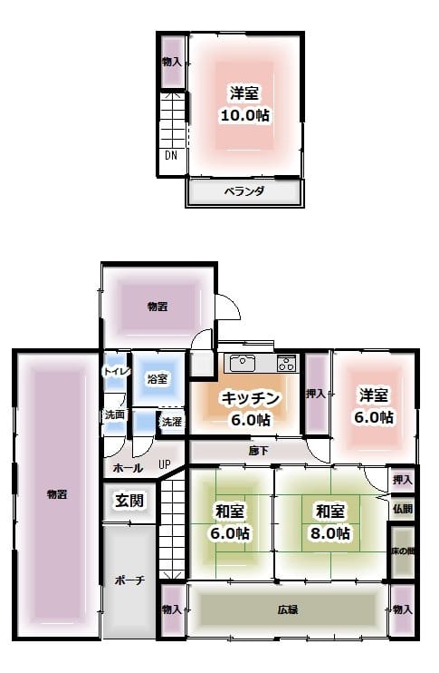 - 間取4SLDK(和 12・8 洋 7.5・10)