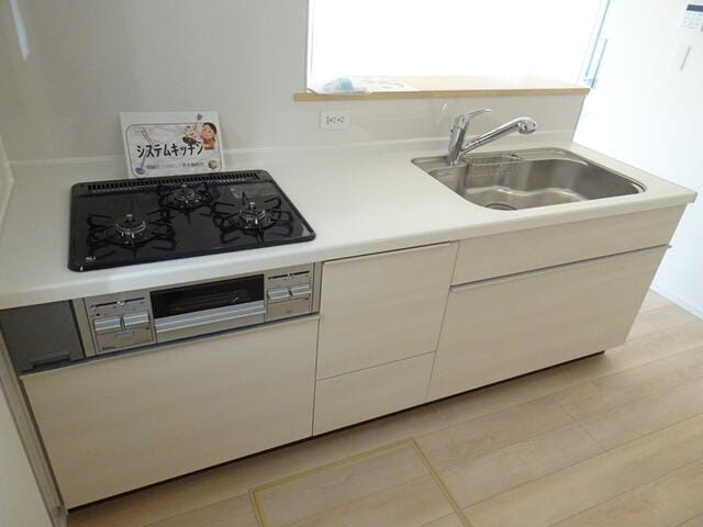 | 設備 | 食器洗浄乾燥機・TVモニタ付きインターホン・ディンプルキー・防犯カメラ・火災警報器(報知機)・温水洗浄便座・オートバス・浴室乾燥機・バス1坪以上・トイレ2箇所・追焚機能・バルコニー・床下収納・24時間換気システム・設計住宅性能評価書・建築住宅性能評価書・建築確認完了検査済証・セットバック済・洗髪洗面化粧台・プロパンガス・上水道・下水道・駐車場3台分 |