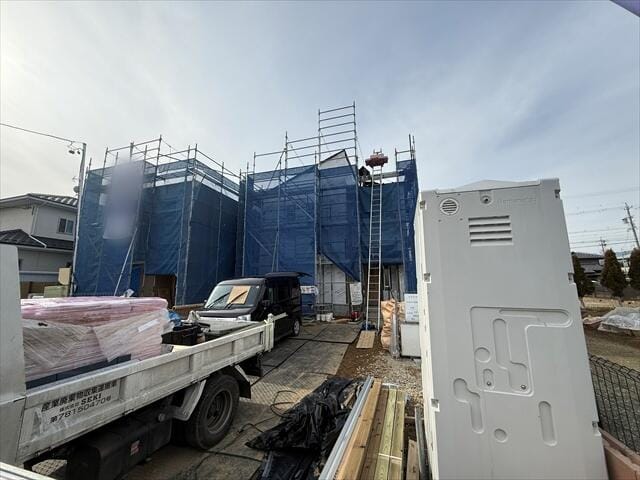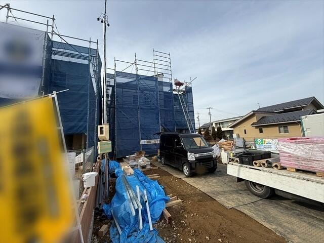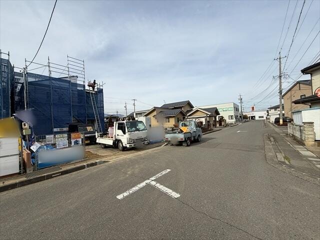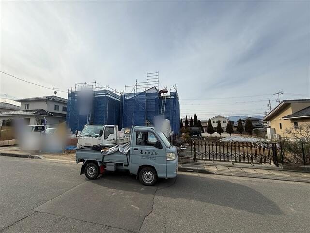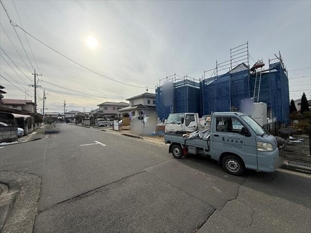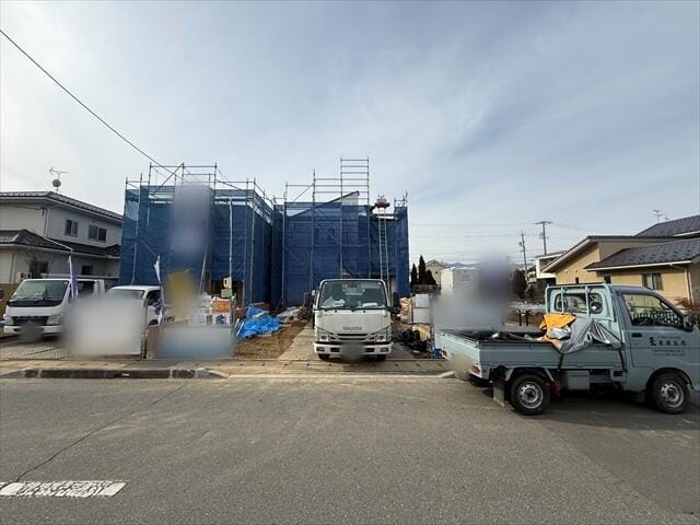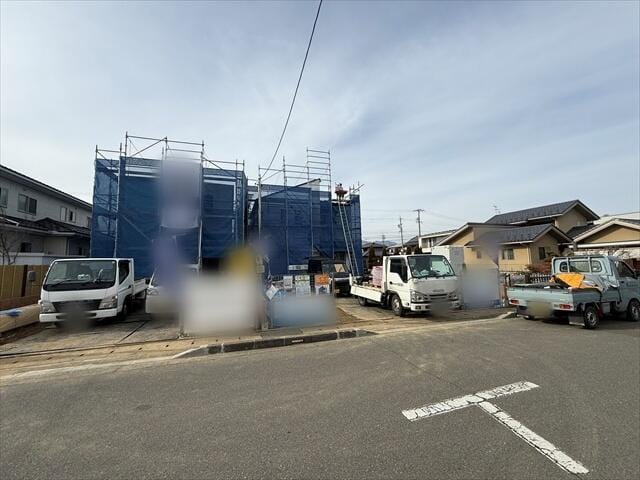 現在建設作業中ですが、近隣で既に完成している建物をご覧頂くことも可能でございます。